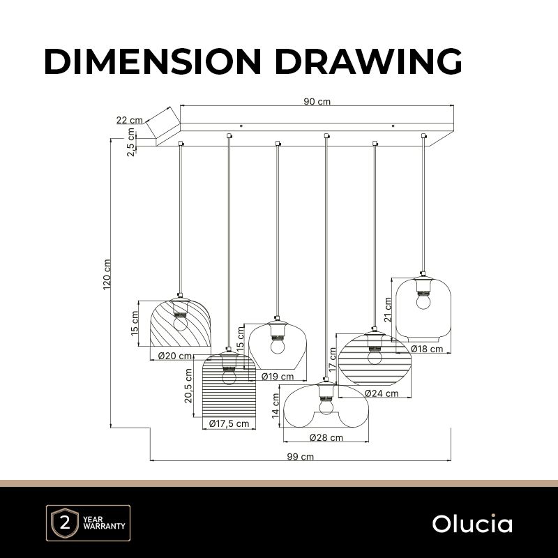 Product informatie Maximale wattage 7 Aansluitspanning 220-240V Aantal lampjes 6 Type fitting E27 Product informatie Incl. lampje Nee Breedte in cm 28 Breedte voet-/montageplaat in cm 22 Hoogte in cm 120 Hoogte voet-/montageplaat 2.5 Lengte in cm 99 Lengte voet-/montageplaat 90 Dimbaar Ja (niet meegeleverd) Garantie 2 jaar IP waarde IP20 (stofdicht) Kleur Zwart, Amber Materiaal Metaal, Glas Stijl Modern Artikelnummer Q11958 - Home