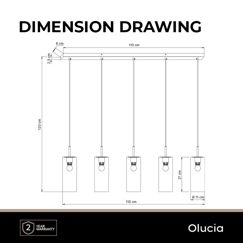 Product informatie Maximale wattage 60 Aansluitspanning 220-240V Aantal lampjes 5 Type fitting E27 Product informatie Incl. lampje Nee Breedte in cm 110 Breedte voet-/montageplaat in cm 8 Hoogte in cm 120 Hoogte voet-/montageplaat 2.5 Lengte in cm 11 Lengte voet-/montageplaat 110 Dimbaar Ja (niet meegeleverd) Garantie 2 jaar IP waarde IP20 (stofdicht) Kleur Zwart, Amber Materiaal Metaal, Glas Stijl Modern Artikelnummer Q79868 - Home