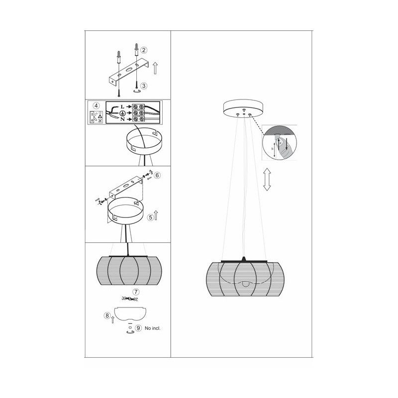 Je kan het snoer eenvoudig inkorten door het snoer door het plafondkapje te trekken. Bereken hiervoor eerst op welke hoogte je de hanglamp wil laten hangen.