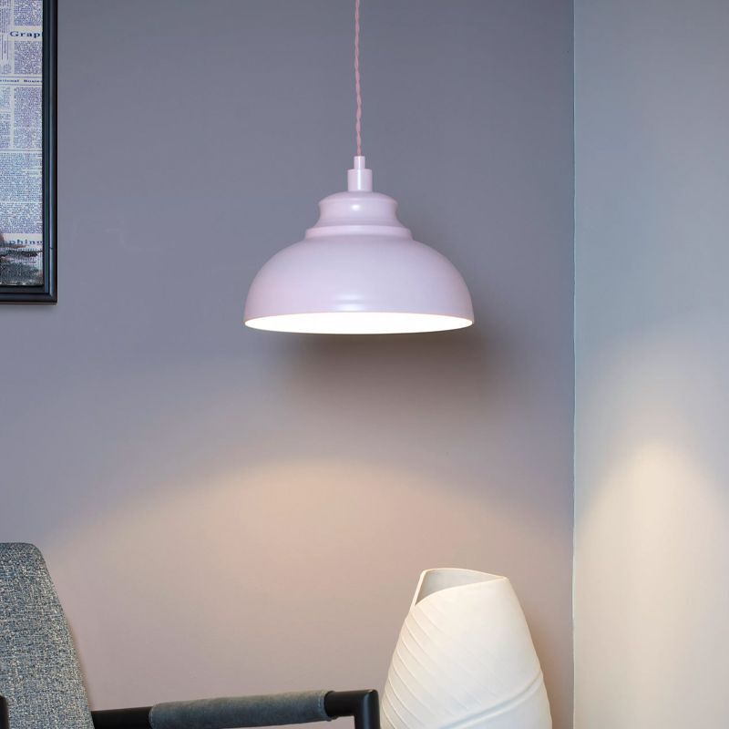 Roze hanglamp Isla heeft een moderne look. De lamp bestaat uit metaal en heeft een mooie, rond gevormde kap. Perfect voor boven de eettafel of het bureau. Is roze niet de kleur die u zoekt? De lamp is ook te bestellen in het creme, bruin, grijs of blauw; type hiervoor het zoekwoord 'Isla' in de zoekbalk. De IP waarde is 20 wat inhoudt dat de lamp geschikt is voor gebruik binnenshuis en niet geschikt is voor buiten of in de badkamer vanwege water en vocht dat in de lamp kan komen.