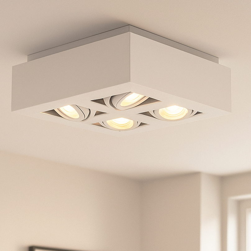 Product informatie Maximale wattage 25 Aansluitspanning 220-240V Aantal lampjes 4 Type fitting GU10 Product informatie Incl. lampje Nee Breedte in cm 25 Hoogte in cm 8.8 Lengte in cm 25 Dimbaar Ja (niet meegeleverd) Garantie 2 jaar IP waarde IP20 (stofdicht) Kleur Wit Materiaal Aluminium Stijl Modern Artikelnummer Q51727 - Home