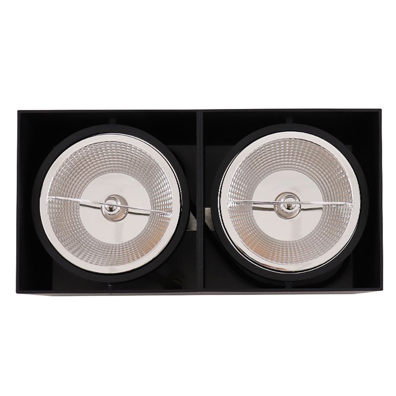 De moderne opbouwspot Mario is zwart van kleur en gemaakt van aluminium. De zwarte opbouwspot wordt geleverd exclusief bijpassende lichtbronnen. In deze lamp moeten 2 lichtbronnen met GU10 (AR111) fittingen. Het maximale wattage van de lichtbronnen mag niet hoger zijn dan 40 watt.