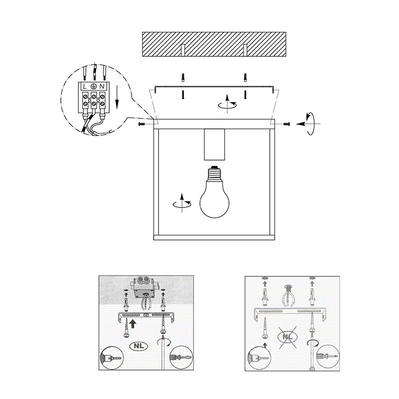 Deze plafondlamp wordt zonder de benodigde lichtbron geleverd. De lamp is geschikt voor LED lampen en heeft een E27 (grote) fitting. Het maximale wattage per lichtbron is 40.