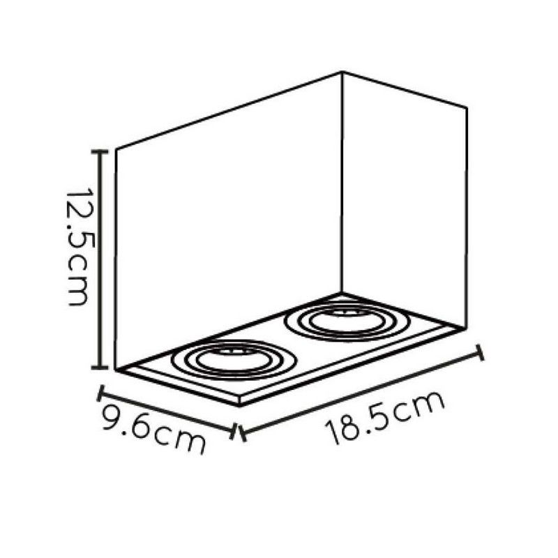 Product informatie Maximale wattage 50 Aansluitspanning 220-240V Aantal lampjes 2 Type fitting GU10 Product informatie Incl. lampje Nee Breedte in cm 9.6 Gewicht in kg 1 Hoogte in cm 12.5 In hoogte verstelbaar Nee Lengte in cm 18.5 Dimbaar Ja (niet meegeleverd) Garantie 2 jaar IP waarde IP20 (stofdicht) Kleur Zwart Materiaal Aluminium Met schakelaar Nee Met snoer en stekker Nee Stijl Modern Artikelnummer Q18408 - Home