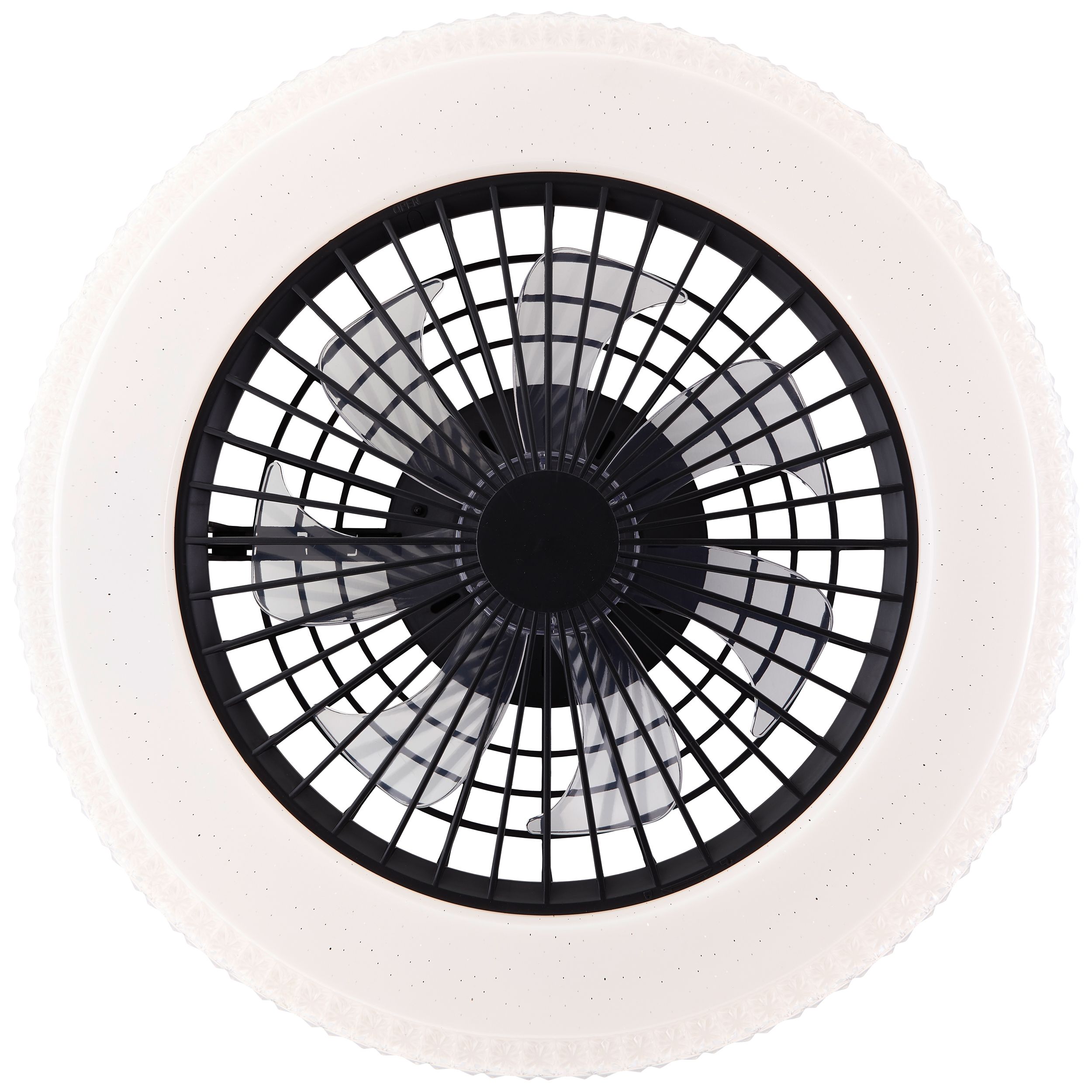 De moderne plafondventilator Baki is zwart van kleur en gemaakt van kunststof. Deze zwarte plafondventilator is uitgerust met geïntegreerd LED. De lamp heeft een vermogen van 40 watt en de lichtkleur RGBW (alle kleuren + wit). Bij RGBW verlichting kan je kiezen uit alle vrijwel alle lichtkleuren en wittinten. Je bepaalt zo zelf met welke kleur je sfeer creëert in jouw kamer.