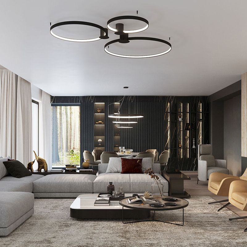 - Moderne plafonnière Ringo, zwart, aluminium, 70w, 3000K