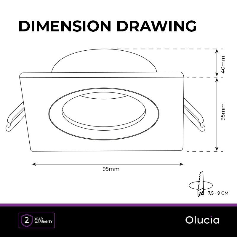 • Inbouwhoogte: 3,5 cm en zaagmaat: 7,5 cm