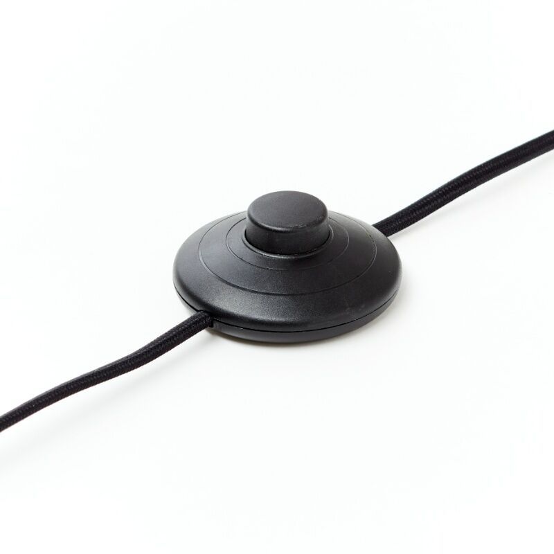 Deze moderne vloerlamp heeft een aan-uitschakelaar op het snoer. Met een snoerschakelaar zet je gemakkelijk de lamp aan en uit en hoef je niet de stekker uit het contact te halen.