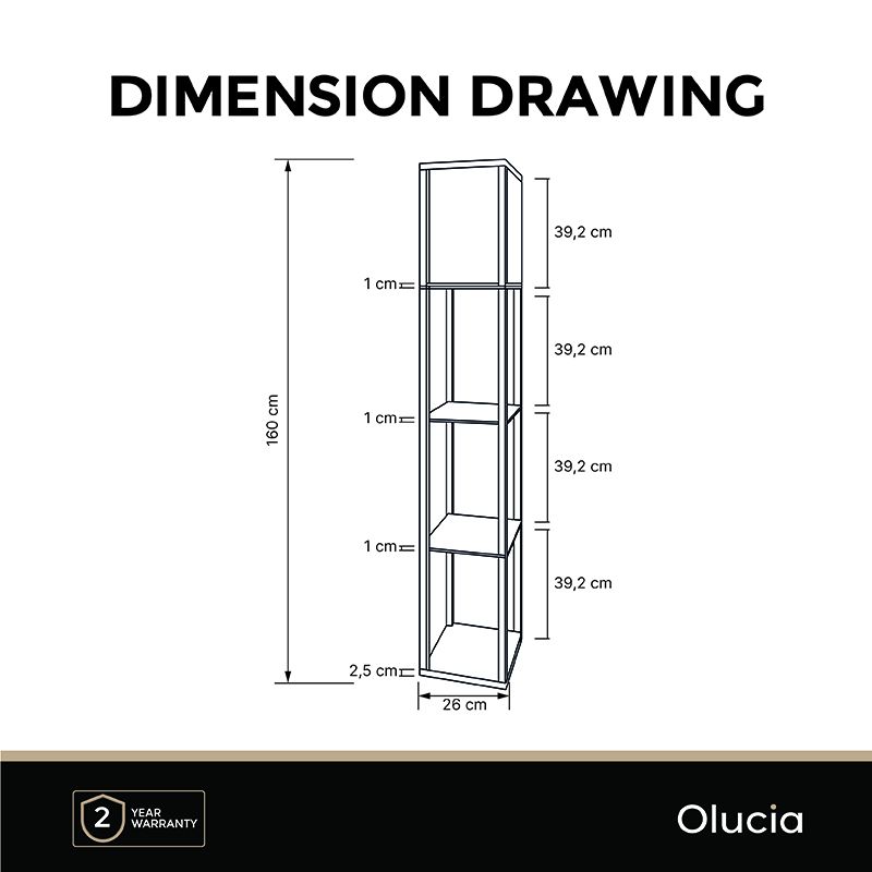 • 26 cm lang, 26 cm breed en 160 cm hoog