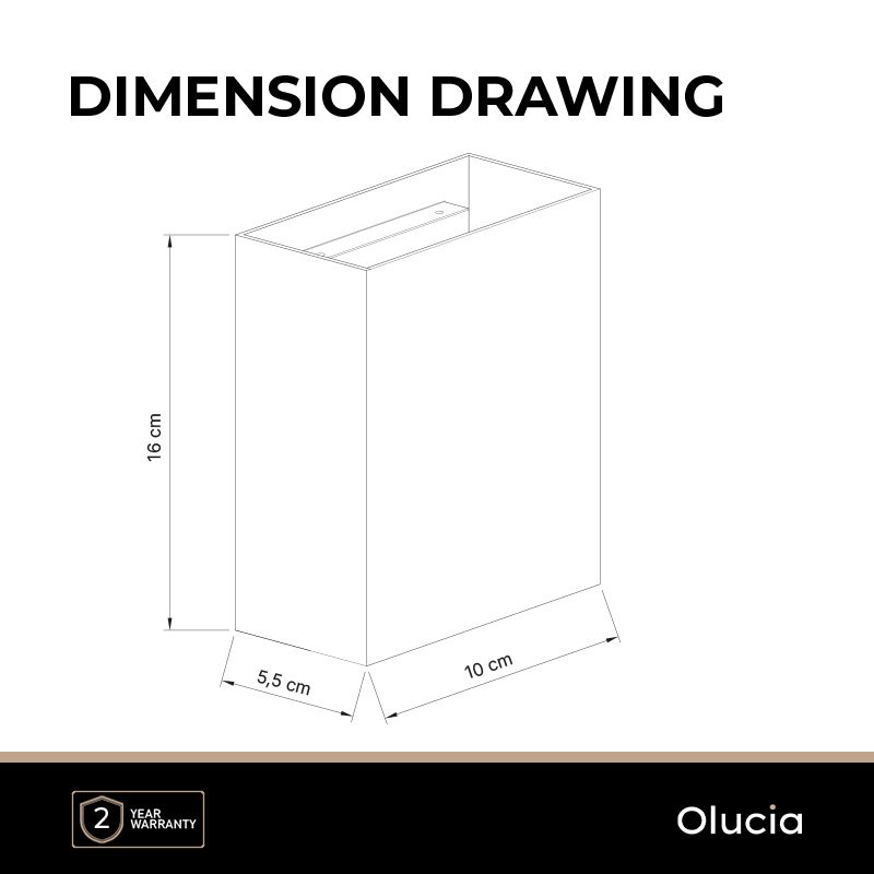 • 10 cm lang, 5,5 cm breed en 16 cm hoog