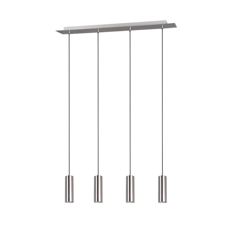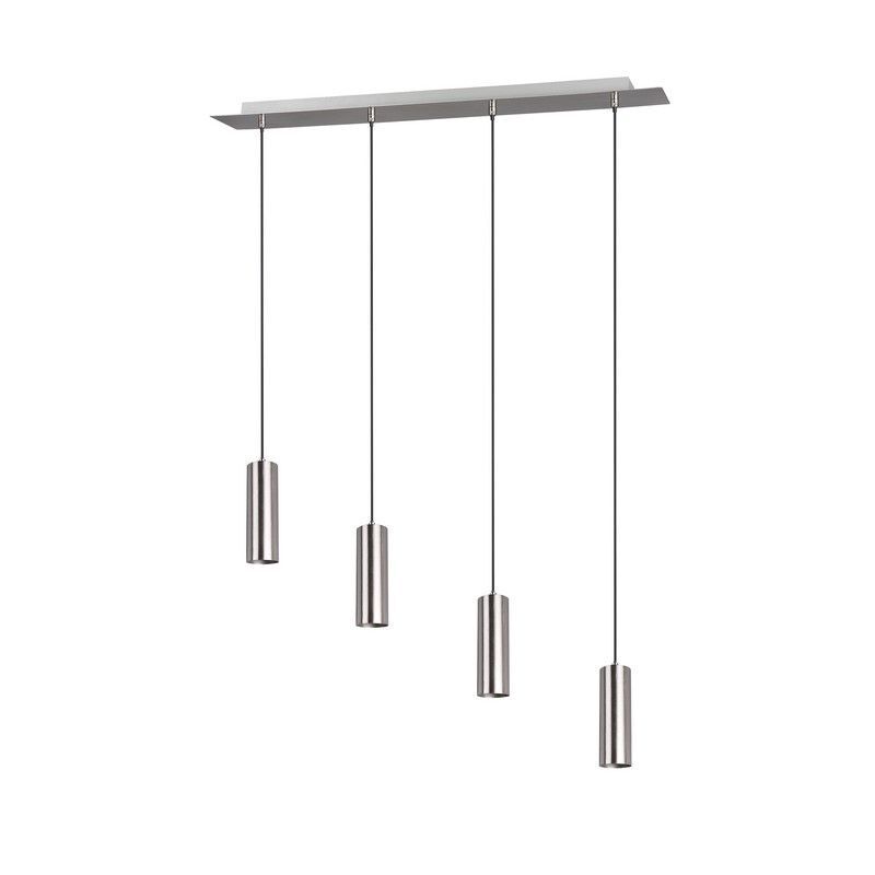 De nikkelen hanglamp Kaso heeft de stijl modern en is gemaakt van metaal. Deze moderne hanglamp heeft 4 GU10 fittingen en wordt exclusief 4 bijpassende lichtbronnen geleverd. In de lamp kunnen lichtbronnen met een maximaal vermogen van 35 watt.