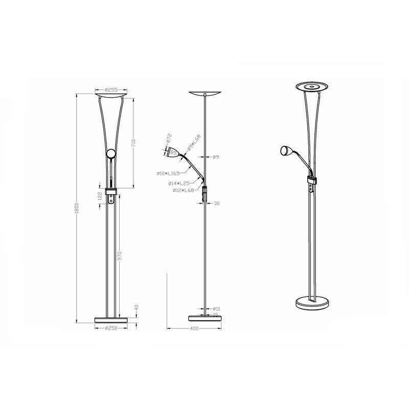 Product informatie Maximale wattage 20 Aansluitspanning 220-240V Aantal lampjes 2 Aantal lumen 2000 Product informatie Lichtkleur 3000K (warm wit) Type fitting LED ingebouwd Type lichtbron bijgevoegd Geïntegreerd LED Verwachte aantal branduren 30000 Incl. lampje Ja, geïntegreerd Breedte in cm 25.5 Diameter in cm 25.5 Gewicht in kg 5.18 Hoogte in cm 180 Lengte in cm 25.5 Dimbaar Ja (meegeleverd) Garantie 2 jaar IP waarde IP20 (stofdicht) Kleur Nikkel Materiaal Metaal Met schakelaar Ja Met snoer en stekker Ja Ruimte Woonkamer, Slaapkamer Stijl Klassiek Type schakelaar Aan/uit schakelaar op het product Artikelnummer Q12576 - Home