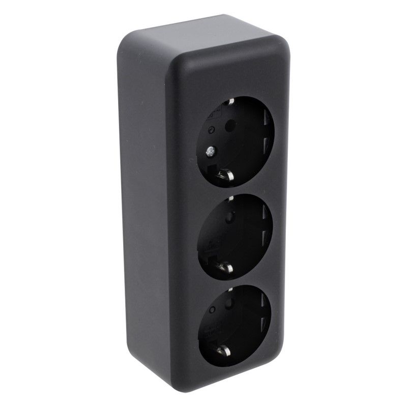 - Q-Link opbouw contactdoos 3-voudig, met kinderbeveiliging en randaarde, zwart