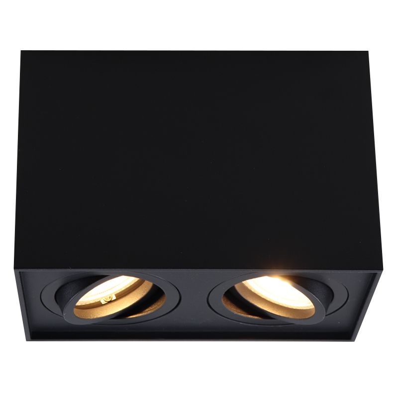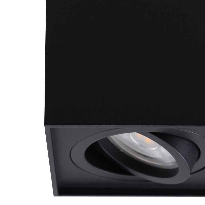 De rechthoekige zwarte opbouwspot Dane is een strakke plafondlamp met een moderne look. Deze compacte spot is uitgevoerd met een richtbare lichtbronnen die u een bepaalde hoek in kunt richten of bijvoorbeeld (iets aan) de wand verlichten. Deze zwarte opbouwspot is 25 graden kantelbaar.