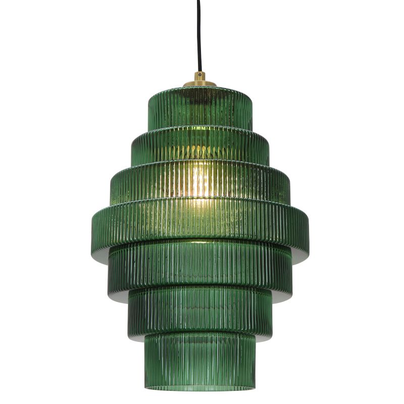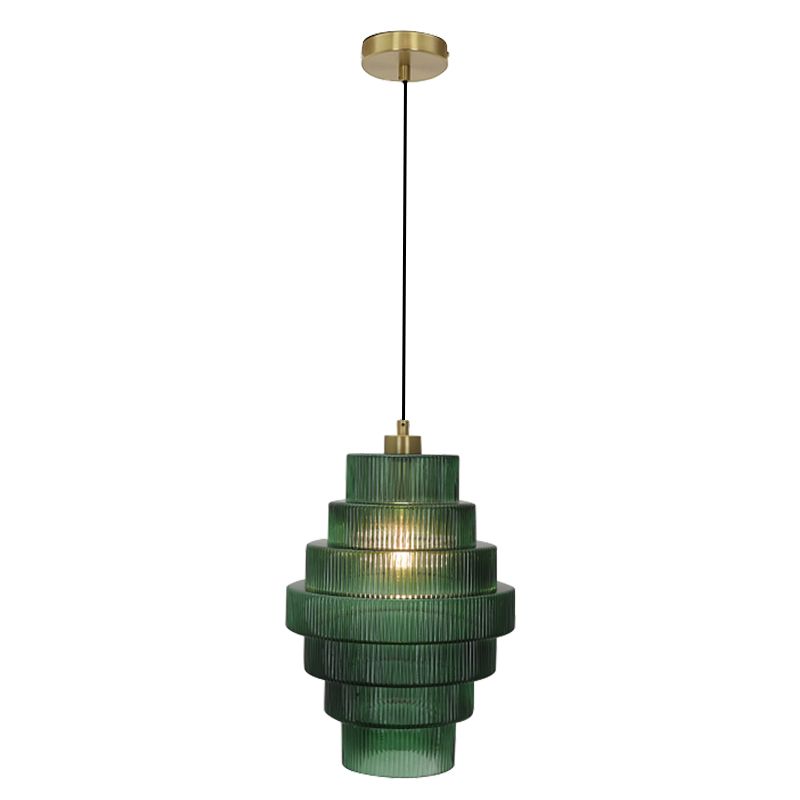 Retro hanglamp groen, Anniek- D: 25 cm, H: 120 cm