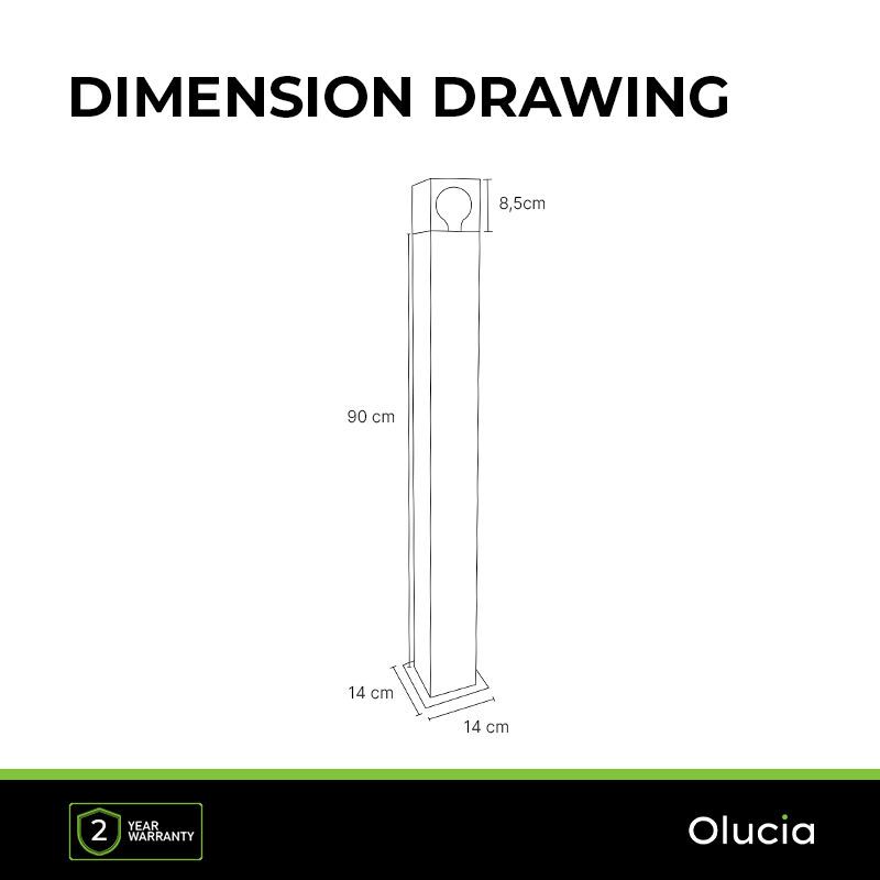 • 12 cm lang, 12 cm breed en 90 cm hoog