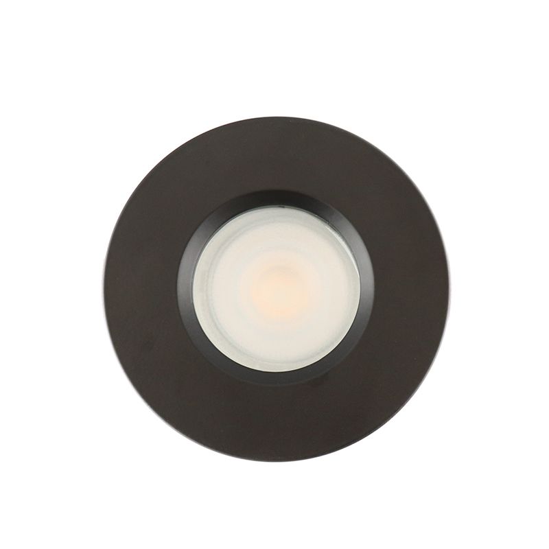 Ronde LED inbouwspot met een zwart geborsteld plafondplaatje. Deze spot heeft een IP waarde van IP65 waarmee de spot erg geschikt is voor in de badkamer, buiten en andere vochtige (en uiteraard niet vochtige) ruimtes.