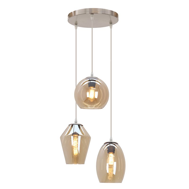 - Ronde design hanglamp Lazaro met 3 amberkleurige kappen