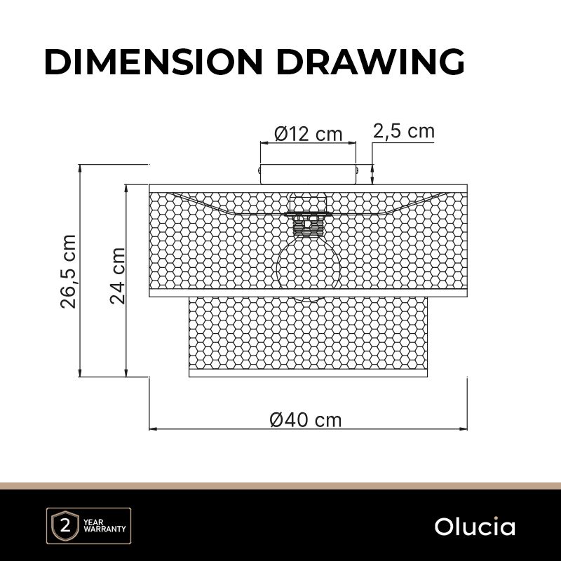 Product informatie Maximale wattage 40 Aansluitspanning 220-240V Aantal lampjes 1 Type fitting E27 Product informatie Incl. lampje Nee Breedte in cm 40 Breedte voet-/montageplaat in cm 12 Diameter in cm 40 Hoogte in cm 26.5 Hoogte voet-/montageplaat 2.5 Lengte in cm 40 Lengte voet-/montageplaat 12 Dimbaar Ja (niet meegeleverd) Garantie 2 jaar IP waarde IP20 (stofdicht) Kleur Bruin, Zwart Materiaal Rotan, Overig Stijl Landelijk Artikelnummer Q10204 - Home