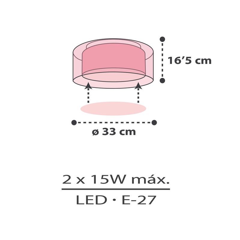 Product informatie Maximale wattage 25 Aansluitspanning 220-240V Aantal lampjes 2 Type fitting E27 Product informatie Incl. lampje Nee Breedte in cm 33 Diameter in cm 33 Gewicht in kg 0.865 Hoogte in cm 17 Dimbaar Ja (niet meegeleverd) Garantie 2 jaar IP waarde IP20 (stofdicht) Kleur Roze Materiaal Kunststof Ruimte Babykamer, Kinderkamer Stijl Basis Artikelnummer Q33921 - Home