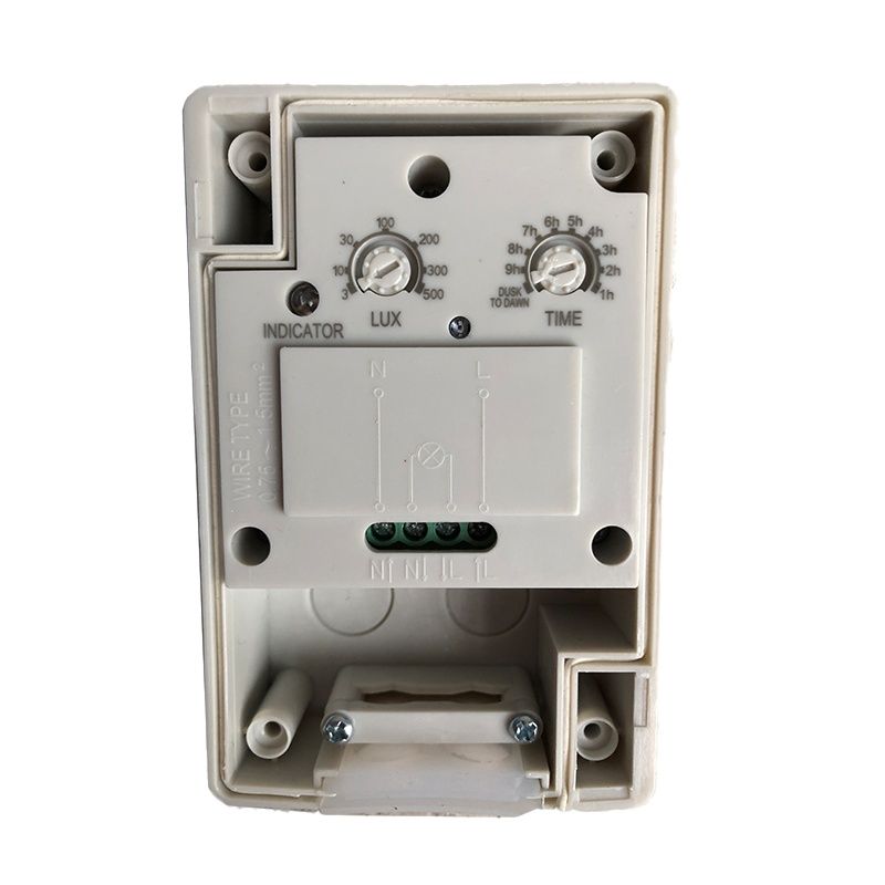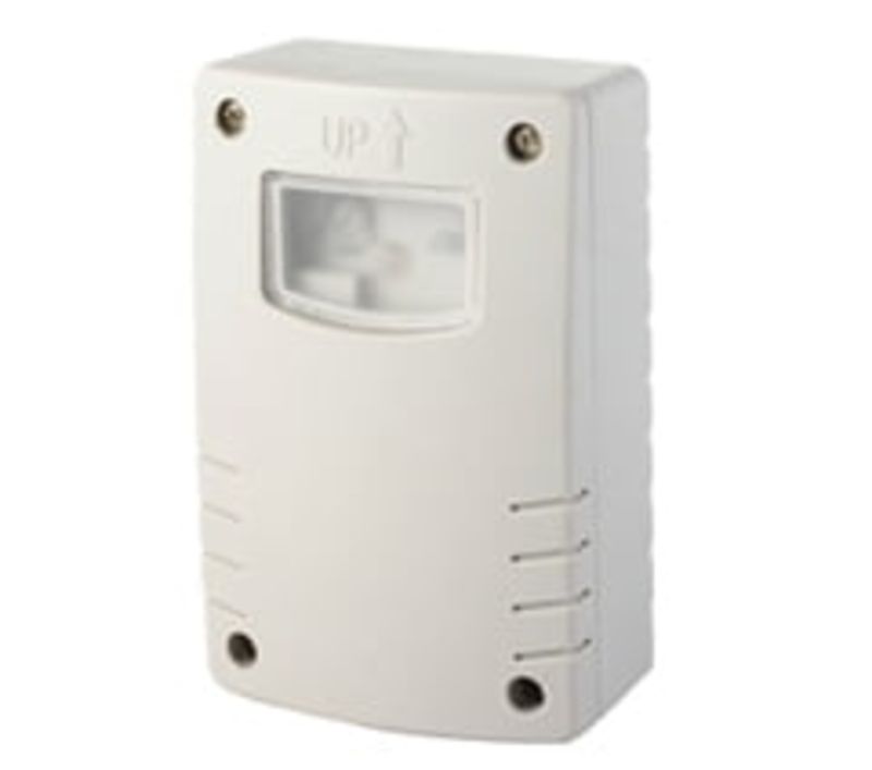 Met deze daglichtsensor regel je verlichting automatisch op basis van omgevingslicht. Stel de lichtgevoeligheid (5-200 lux) en uitschakeltijd naar wens in.