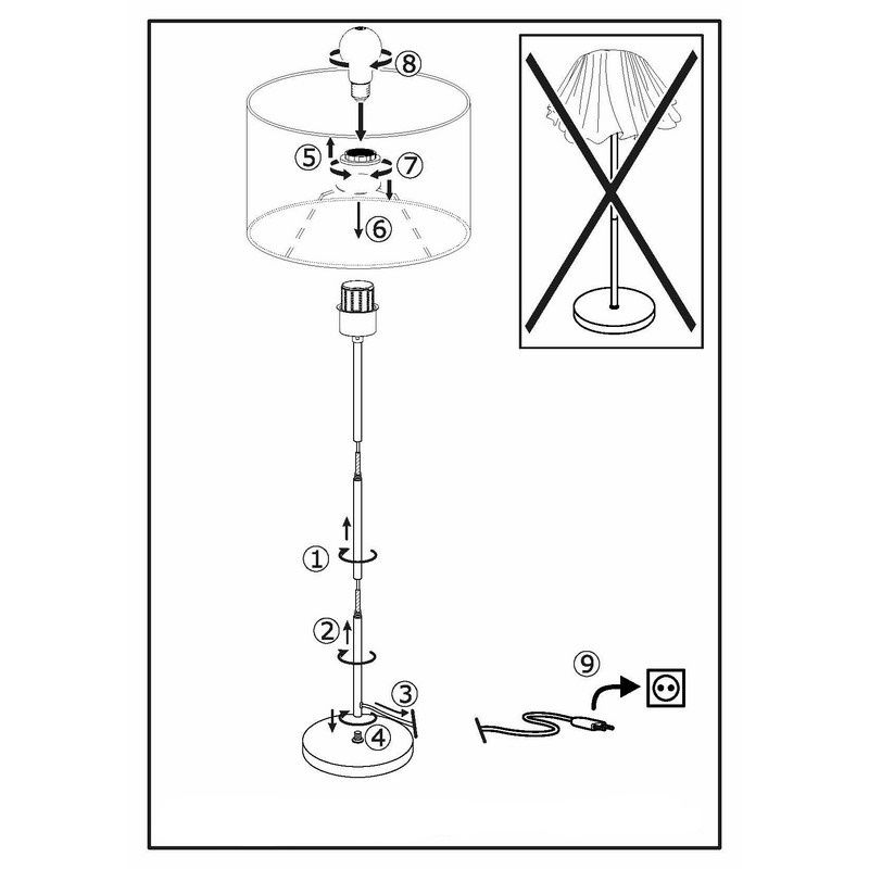 Deze vloerlamp wordt zonder de benodigde lichtbron geleverd. De lamp is geschikt voor LED lampen en heeft een E27 (grote) fitting. Het maximale wattage per lichtbron is 1X60W.