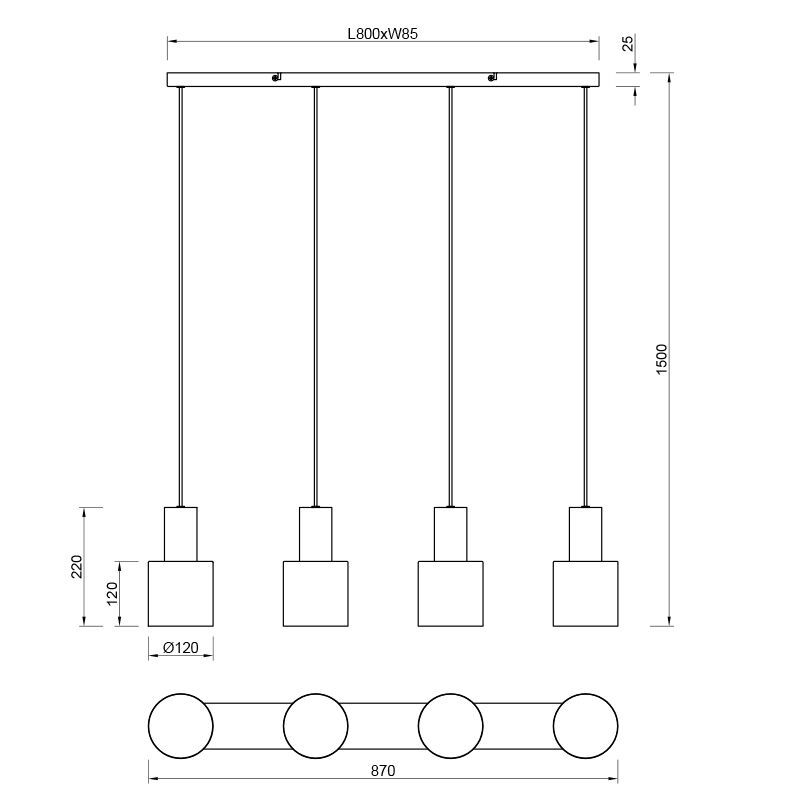 • 4 x E27 fitting (excl. lichtbronnen)