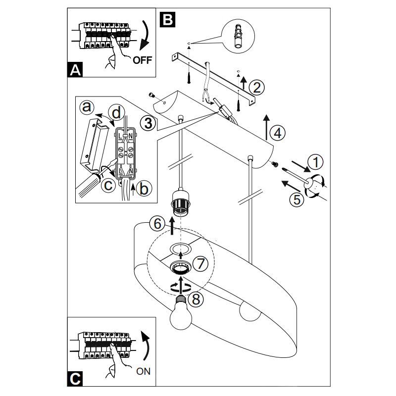 Je kan het snoer eenvoudig inkorten door het snoer door het plafondkapje te trekken. Bereken hiervoor eerst op welke hoogte je de hanglamp wil laten hangen.