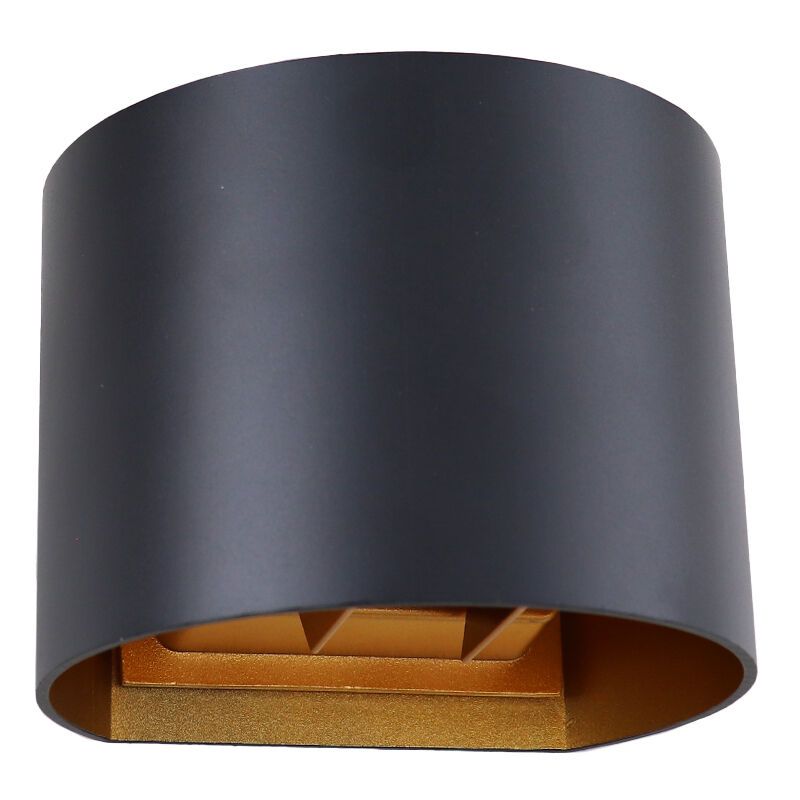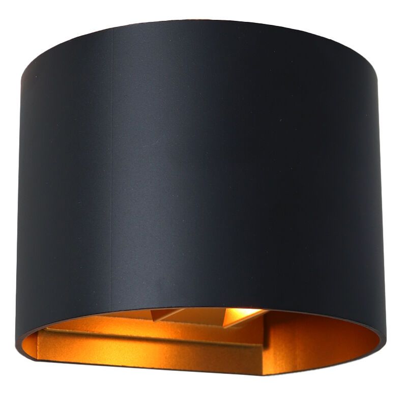 - Up down wandlamp zwart met gouden binnenzijde, Dion, 6W, 2700K LED, IP65