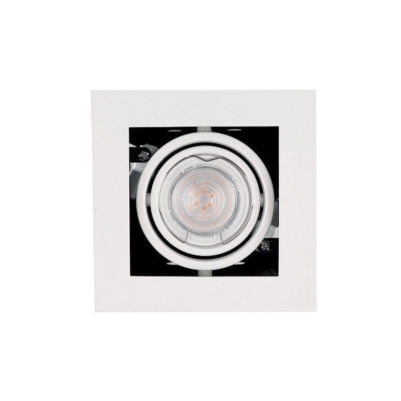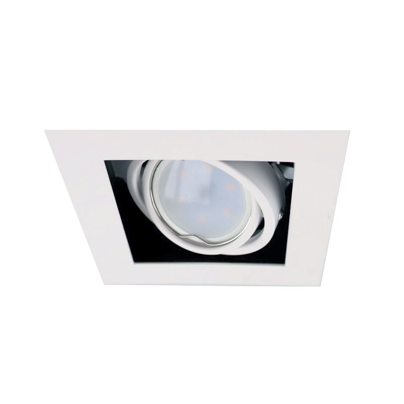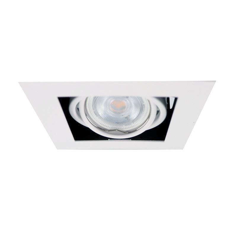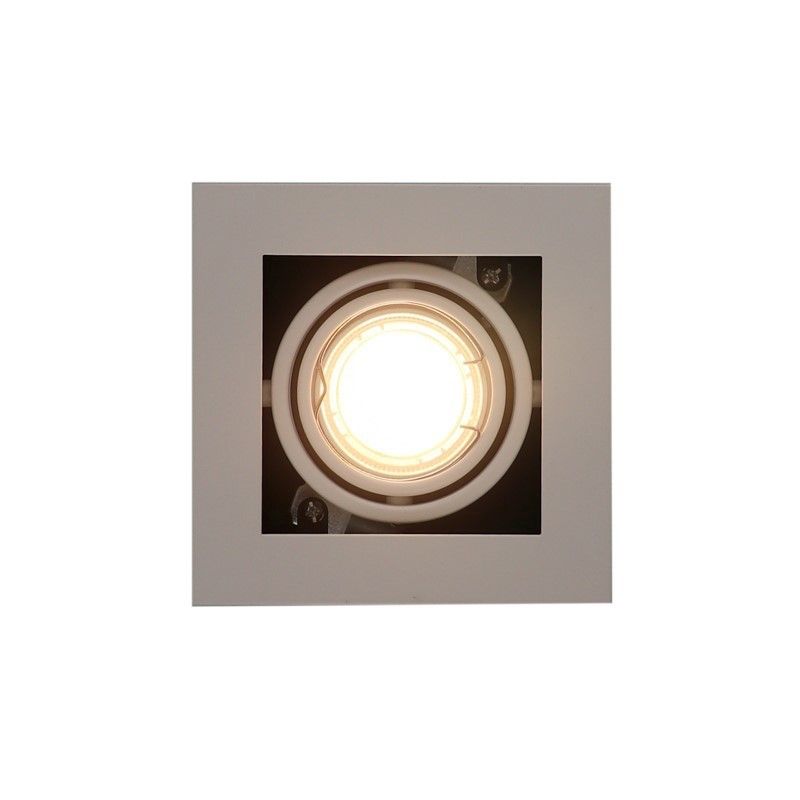 Vierkante inbouwspot Tyrese is uitgevoerd in de kleur wit. De vierkante inbouwspot heeft een sterke aluminium omranding en is eenvoudig te installeren met de 2 lipjes die boven het plafond klemmen.