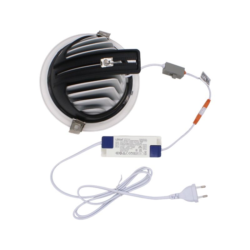 De witte downlight Anjuli is gemaakt van aluminium. De witte downlight is uitgevoerd met 33 watt geïntegreerd LED verlichting. De geïntegreerde LED verlichting heeft de lichtkleur die te verstellen is tussen warm en koud wit. Met deze lamp pas je eenvoudig de sfeer in jouw ruimte aan naar een warmere of koelere sfeer.