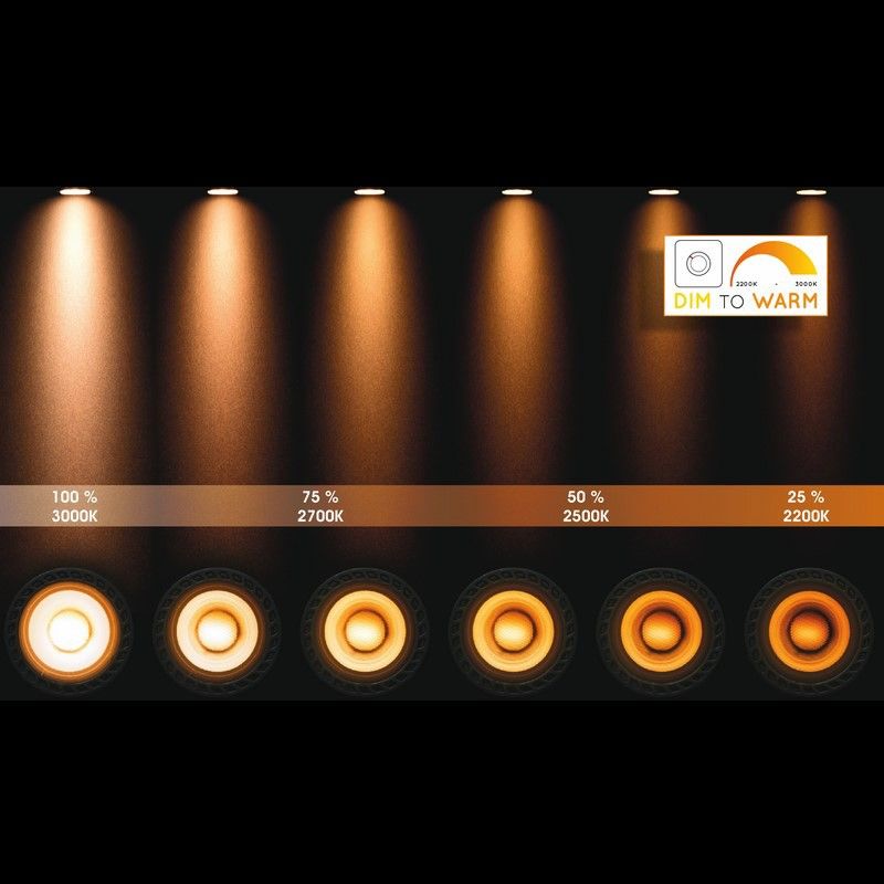 De witte opbouwspot Xirax heeft de stijl modern en is gemaakt van aluminium. Deze moderne opbouwspot is voorzien van bijpassende lichtbronnen. De lamp heeft GU10 fittingen. Het vermogen van de meegeleverde lichtbronnen is 5 watt en de lichtkleur dim to warm. Wanneer je deze lamp dimt wordt niet alleen de lichtsterkte aangepast. De lamp krijgt ook gelijk een warmere lichtkleur.