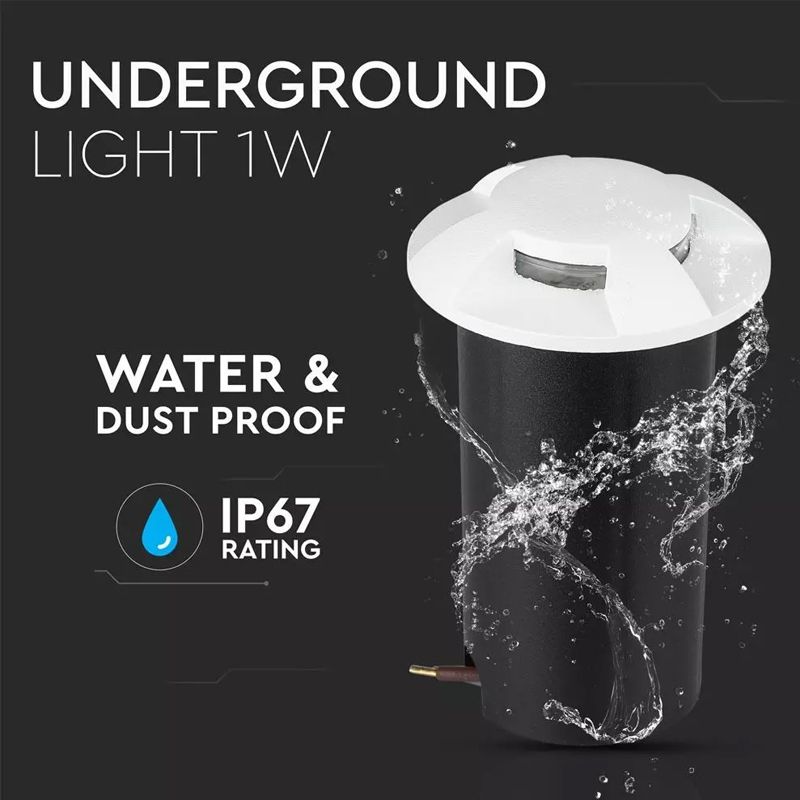 - Witte grondspot Marcus (4 stralen), kunststof, IP67, 1W, 3000K