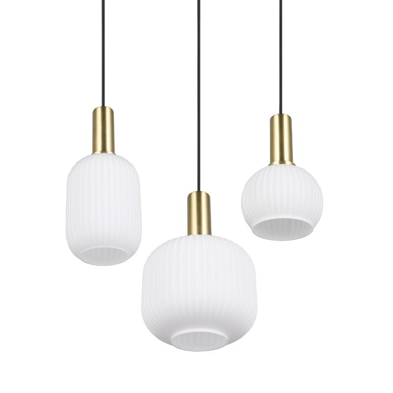 Product informatie Maximale wattage 10 Aansluitspanning 220-240V Aantal lampjes 3 Type fitting E27 Product informatie Incl. lampje Nee Breedte in cm 38.5 Diameter in cm 30 Hoogte in cm 150 Dimbaar Ja (niet meegeleverd) Garantie 2 jaar IP waarde IP20 (stofdicht) Kleur Messing, Wit Materiaal Metaal, Glas Stijl Design Artikelnummer Q81111 - Home