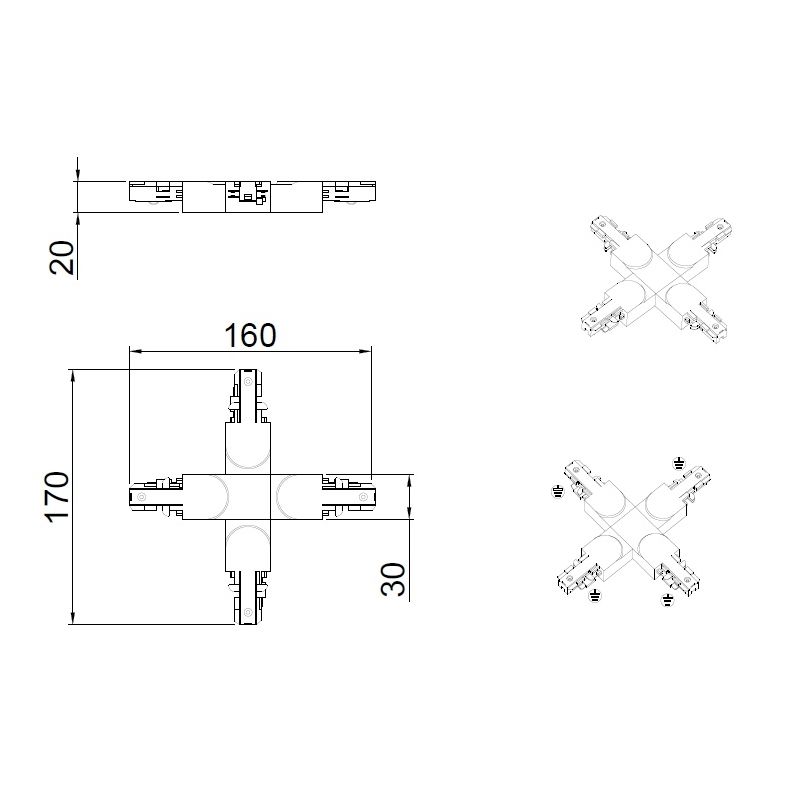 1 meter spanningsrail voor 2-fase railverlichting, zwart 50cm spanningsrail voor 2-fase railverlichting, grijs 1 meter spanningsrail voor 2-fase railverlichting, grijs Grijs koppelstuk 2 fase railverlichting- B: 3 cm, H: 2 cm
