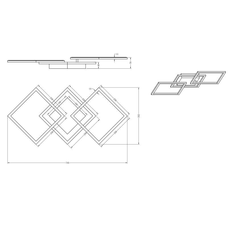 69,993-6 werkdagen Zwarte plafonnière modern, Margaux, 31W, 3000K LED- B: 52,6 cm, H: 7 cm