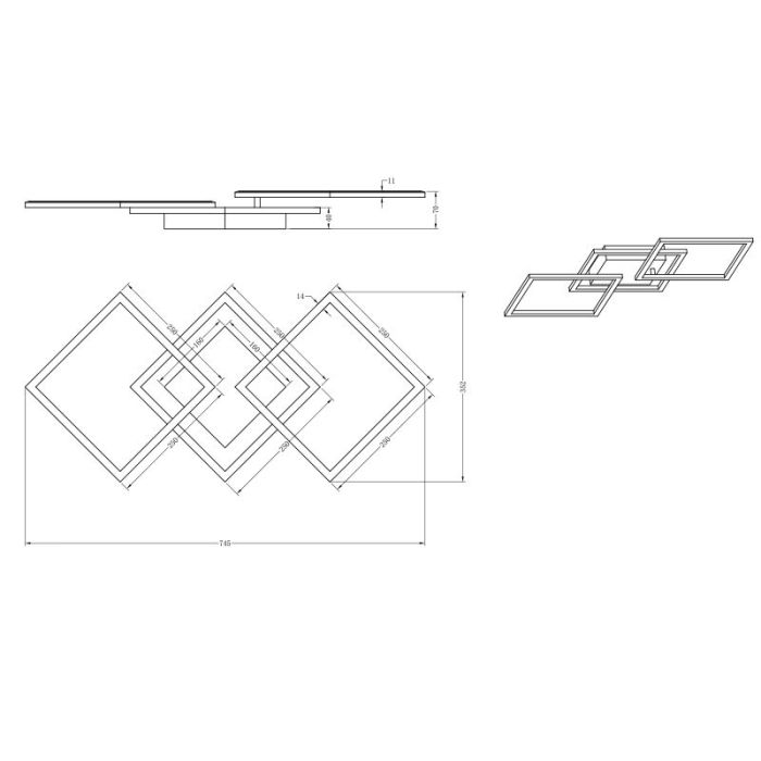• 52,6 cm lang, 52,6 cm breed en 7 cm hoog