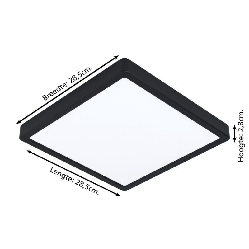 • 28,5 cm lang, 28,5 cm breed en 3 cm hoog