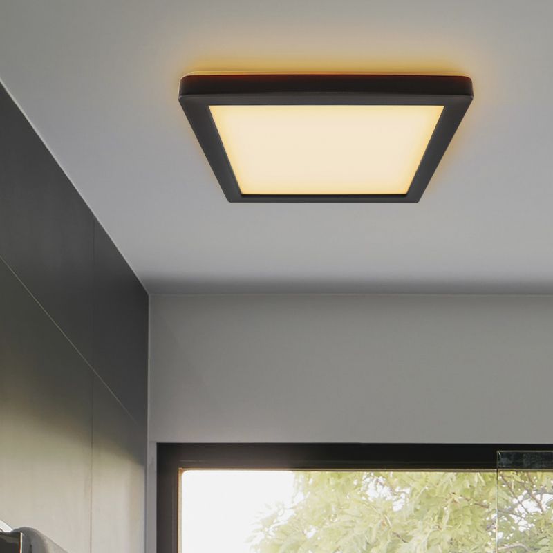 - Zwarte badkamer plafondlamp Shivani, vierkant, IP44, 15W, 3000K LED