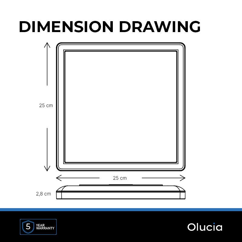 • 25 cm lang, 25 cm breed en 2,8 cm hoog