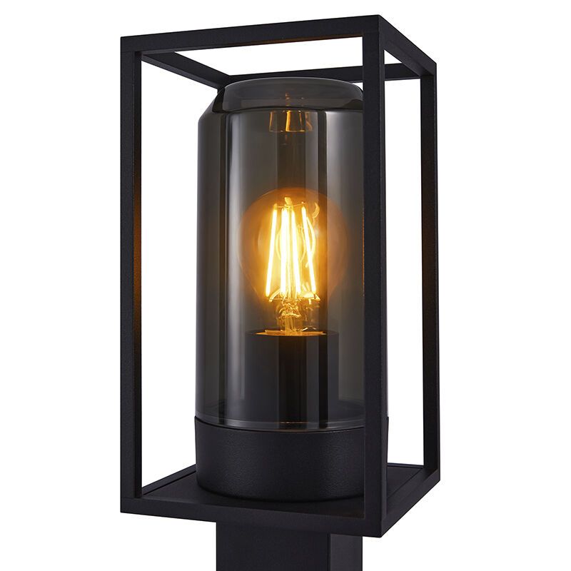 Special Price 44,99 Adviesprijs: Regular Price 54,99Op voorraad Zwarte staande buitenlamp Sanel, Smoke glas, 90cm- B: 12 cm, H: 90 cm