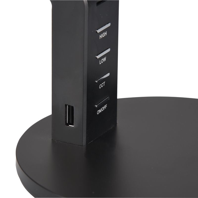 De zwarte bureaulamp Lindi heeft de stijl modern en is gemaakt van kunststof. Deze moderne bureaulamp is voorzien van zuinig geïntegreerd LED licht. De geïntegreerde LED verlichting heeft een vermogen van 5 watt en de lichtkleur die te verstellen is tussen warm en koud wit. Met deze lamp pas je eenvoudig de sfeer in jouw ruimte aan naar een warmere of koelere sfeer.