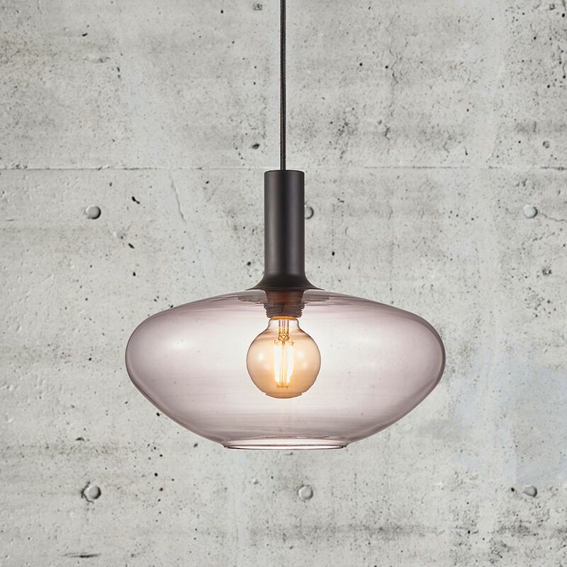 De zwarte hanglamp Alton heeft de stijl design en is gemaakt van glas. Deze design hanglamp heeft een E27 fitting en wordt exclusief bijpassende lichtbron geleverd. In de lamp kunnen lichtbronnen met een maximaal vermogen van 60 watt.
