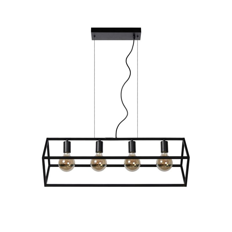 De zwarte hanglamp Fabian heeft de stijl modern en is gemaakt van metaal. De moderne hanglamp wordt geleverd exclusief lichtbronnen. In deze lamp moeten 4 LED lichtbronnen met E27 (grote) fitting. De lichtbronnen mogen maximaal 40 watt aan vermogen hebben. Klik hier voor meer informatie voor het kiezen van de juiste lichtbron. De lamp heeft de IP waarde IP20 en is daardoor niet toe te passen op vochtige plekken. Klik hier voor meer informatie over de IP-waardes.