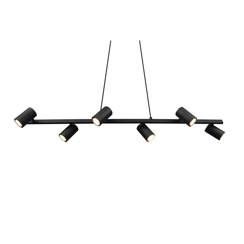De zwarte hanglamp Kaso heeft de stijl modern en is gemaakt van metaal. Deze moderne hanglamp heeft 6 GU10 fittingen en wordt exclusief 6 bijpassende lichtbronnen geleverd. In de lamp kunnen lichtbronnen met een maximaal vermogen van 35 watt.
