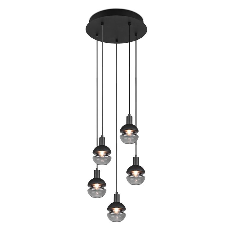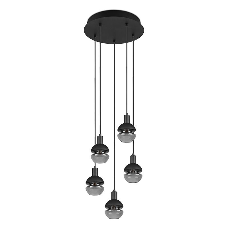 De zwarte hanglamp Selinay heeft de stijl modern en is gemaakt van glas. Deze moderne hanglamp heeft 5 E14 fittingen en wordt exclusief 5 bijpassende lichtbronnen geleverd. In de lamp kunnen lichtbronnen met een maximaal vermogen van 25 watt.