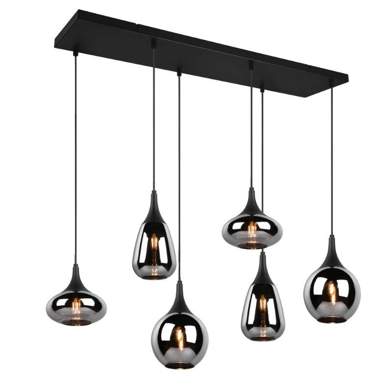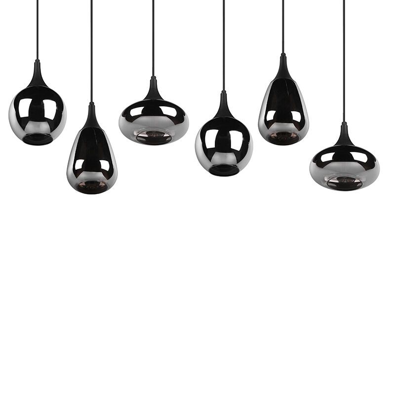 De zwarte hanglamp Sybren heeft de stijl design en is gemaakt van glas. Deze design hanglamp heeft 6 E14 fittingen en wordt exclusief 6 bijpassende lichtbronnen geleverd. In de lamp kunnen lichtbronnen met een maximaal vermogen van 40 watt.