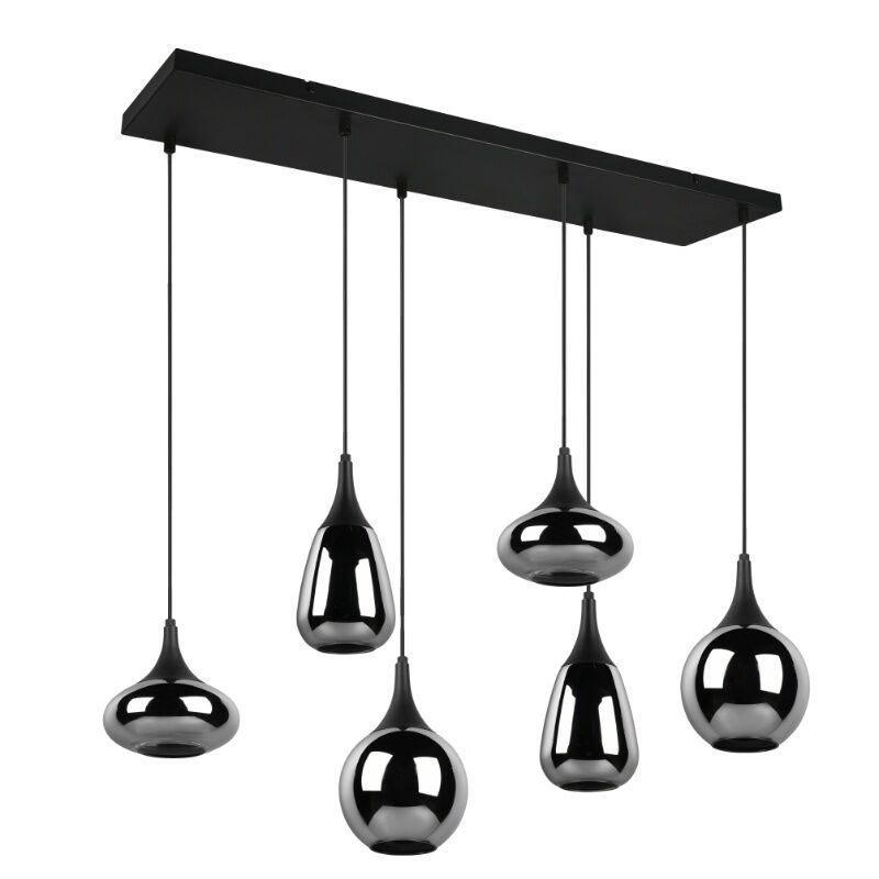 Product informatie Maximale wattage 40 Aansluitspanning 220-240V Aantal lampjes 6 Type fitting E14 Product informatie Incl. lampje Nee Breedte in cm 93.8 Gewicht in kg 5.1 Hoogte in cm 150 Lengte in cm 34.5 Dimbaar Ja (niet meegeleverd) Garantie 2 jaar IP waarde IP20 (stofdicht) Kleur Zwart Materiaal Metaal, Glas Stijl Design Artikelnummer Q52273