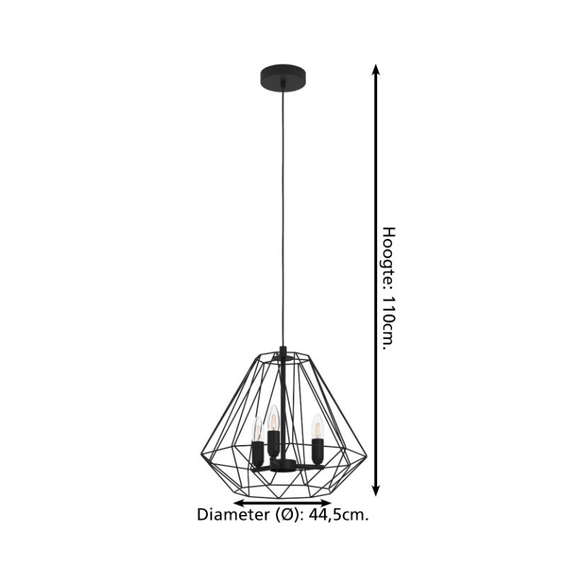Product informatie Maximale wattage 40 Aansluitspanning 220-240V Aantal lampjes 3 Type fitting E14 Product informatie Incl. lampje Nee Breedte in cm 44.5 Diameter in cm 44.5 Gewicht in kg 1.43 Hoogte in cm 110 Dimbaar Ja (niet meegeleverd) Garantie 2 jaar IP waarde IP20 (stofdicht) Kleur Zwart Materiaal Aluminium Stijl Industrieel Artikelnummer Q33877 - Home