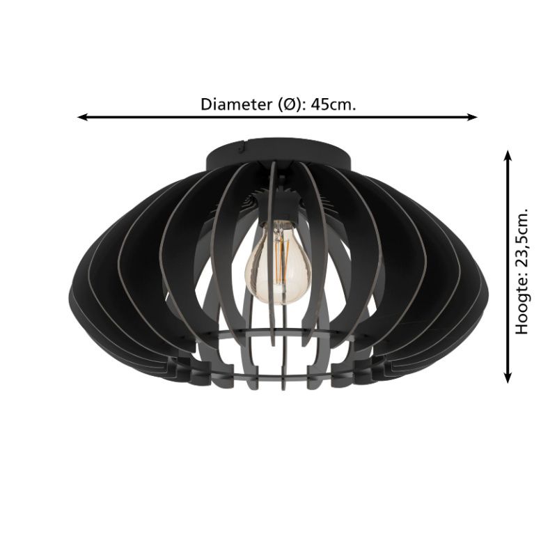 De zwarte industriële plafondlamp Bergama is gemaakt van hout. De zwarte plafondlamp wordt geleverd exclusief geschikte lichtbron met E27 fitting. In het armatuur kunnen LED lichtbronnen met een maximaal vermogen van 40 watt.